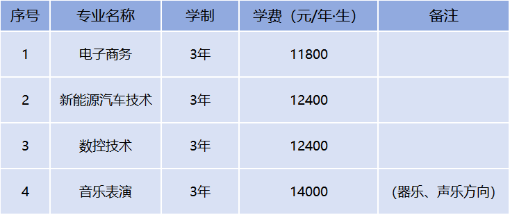 第十五条 收费标准:按照《河南省发展和改革委员会河南省教育厅关于改革我省民办高校学历教育收费管理方式有关事项的通知》(豫发改收费〔2017〕17号)文件执行,结合办学实际,确定如下收费标准:电子商务专业11800元/年·生;数控技术、新能源汽车技术专业12400元/年·生;音乐表演专业14000元/年·生;住宿费标准为1200元/年·生(6人间);教材费500元/年·生(教材费在学年结束时,按实际发生的费用据实结算,多退少补)。